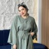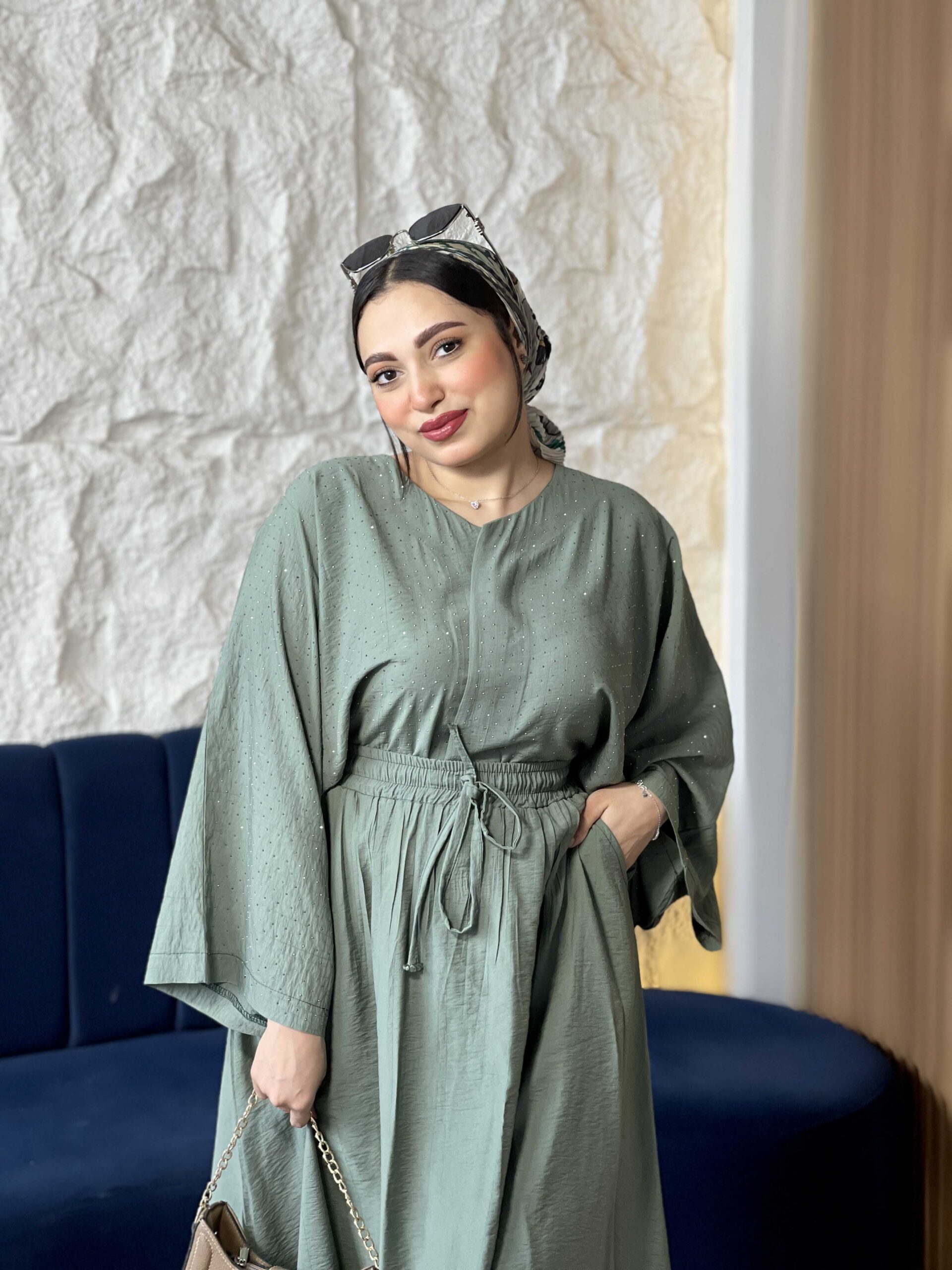 A casual two-piece linen suit with a loose-fit blouse and matching skirt. Designed with delicate shiny details on the blouse for a simple yet chic look. Lightweight, breathable, and super practical — perfect for summer days, casual outings, and everyday wear.